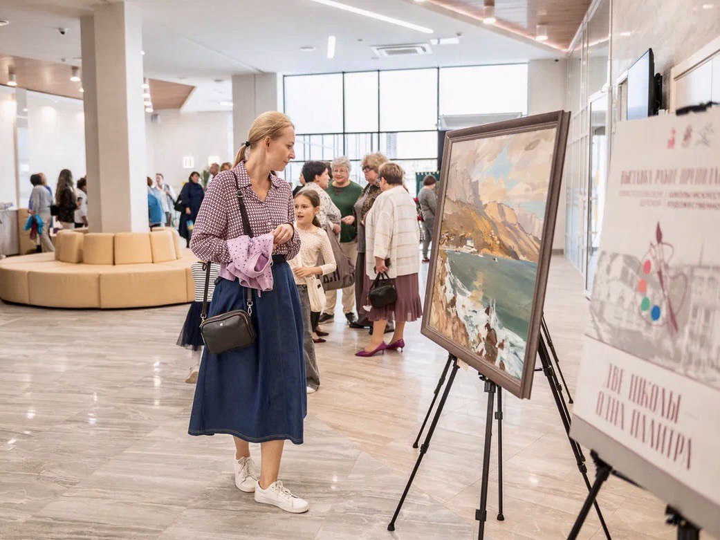 В фойе центра для гостей праздника была представлена выставка «Две школы — одна палитра». В нее вошли живописные и декоративно-прикладные работы преподавателей детской художественной школы и детской школы искусств. Экспозиция показала, что педагогическое мастерство и личное творчество всегда идут рядом.