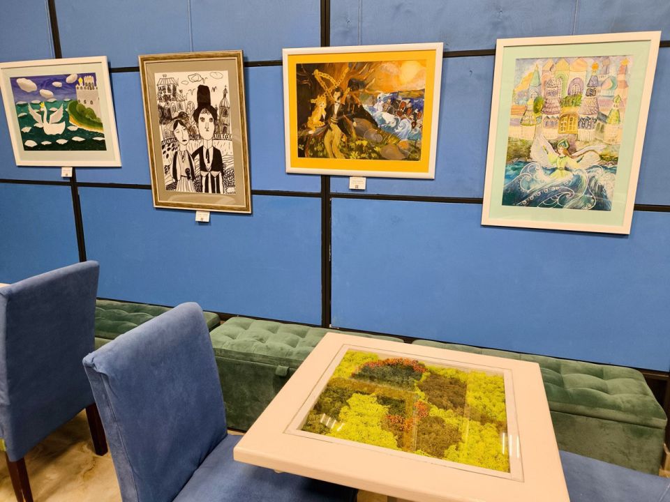 Экспозиция объединяет театр и живопись: юные художники школы-студии «Павлин» представили свои работы по мотивам сказок Пушкина — от «Руслана и Людмилы» до «Сказки о царе Салтане». Их образы вскоре оживут на сцене — в ноябре ТЮЗ представит премьеру спектакля «Сказка о мертвой царевне и о семи богатырях».