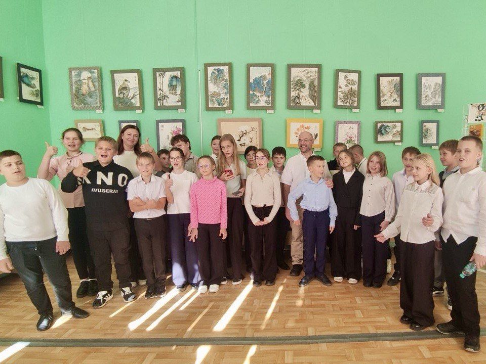 Ребята узнали о великих китайских изобретениях, приняли участие в открытии выставки традиционной живописи Валентины Смирновой и её учеников из студии «Шёлковый путь Тавриды», а также попробовали написать «иероглиф 2025 года» на мастер-классе.