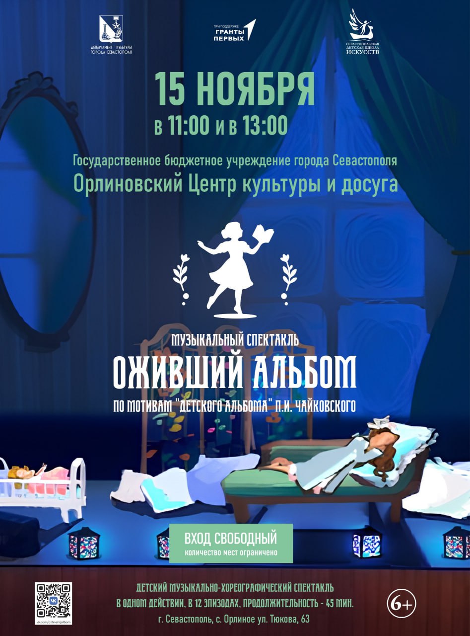 15 ноября впервые для жителей Орлиновского муниципального округа воспитанники Севастопольской детской школы искусств представят музыкально-хореографический спектакль «Оживший альбом». Это большой совместный проект детей-артистов и музыкантов, созданный для детской аудитории. Почти сто участников работали над постановкой более полугода, чтобы подарить зрителям праздник искусства и вдохновения.