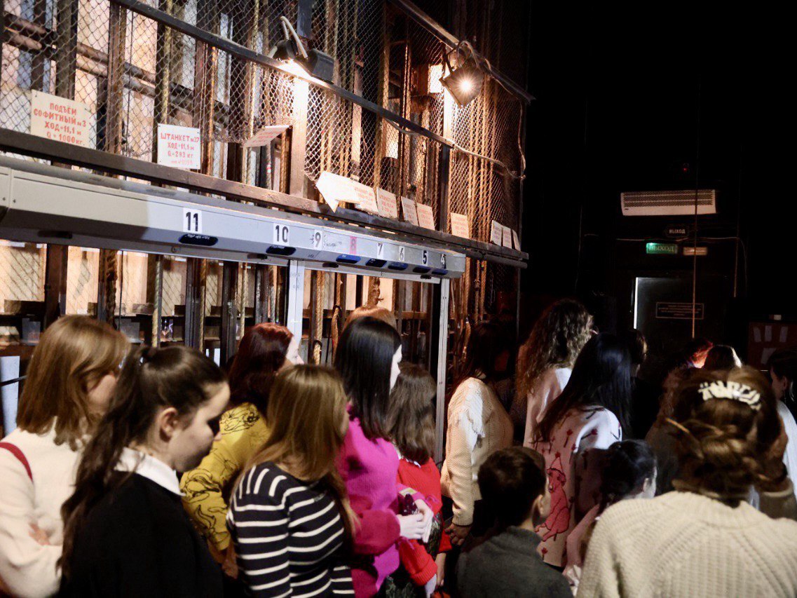 В праздничный день здесь прошла особая экскурсия «Театр начинается с артиста». Участники не просто осмотрели закулисные пространства, а прошли путь, который ежедневно совершает актер: от входа в театр до выхода на сцену. Они смогли почувствовать ритм и атмосферу, в которой рождается спектакль.
