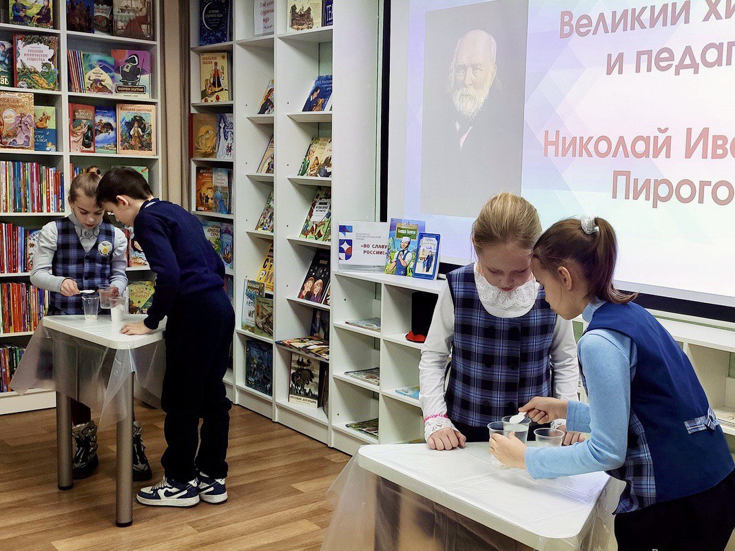 В Центральной городской детской библиотеке имени А. П. Гайдара ребят ждала познавательная игра «Россия — страна великих людей». Участники узнавали факты о выдающихся соотечественниках, определяли писателей по портретам, артистов по голосам, собирали пазлы картин художников и разгадывали филворды с фамилиями композиторов. В модельной детской библиотеке-филиале № 10 прошел познавательный час, посвященный Николаю Пирогову. Ребята познакомились с биографией ученого и врача, узнали о его открытиях, обсудили книгу А. И. Куприна «Чудесный доктор» и попробовали изготовить гипсовую повязку.