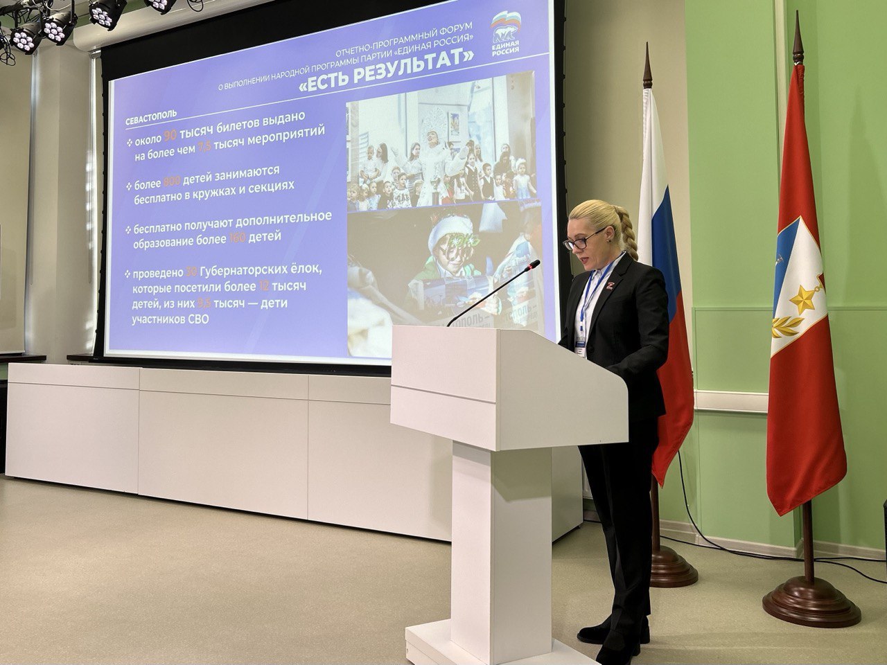 Директор Департамента культуры - член Правительства Севастополя Анжела Сумакова выступила на региональном отчетно-программном форуме, посвященном реализации Народной программы партии «Единая Россия». Площадкой проведения форума стал МКЦ «Бухта Казачья».