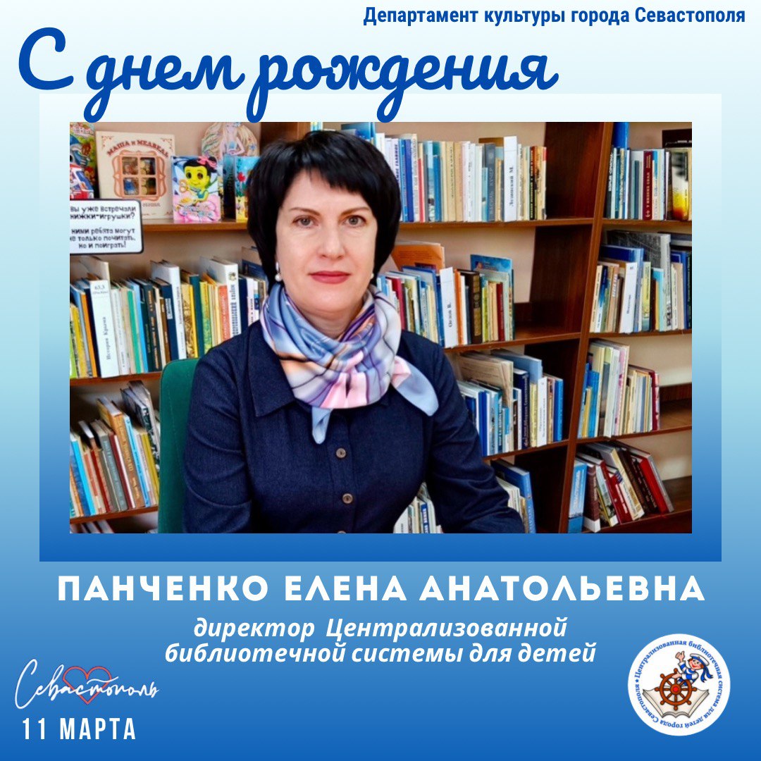 Департамент культуры города Севастополя поздравляет с Днём рождения директора Централизованной библиотечной системы для детей, Заслуженного работника культуры города Севастополя Панченко Елену Анатольевну