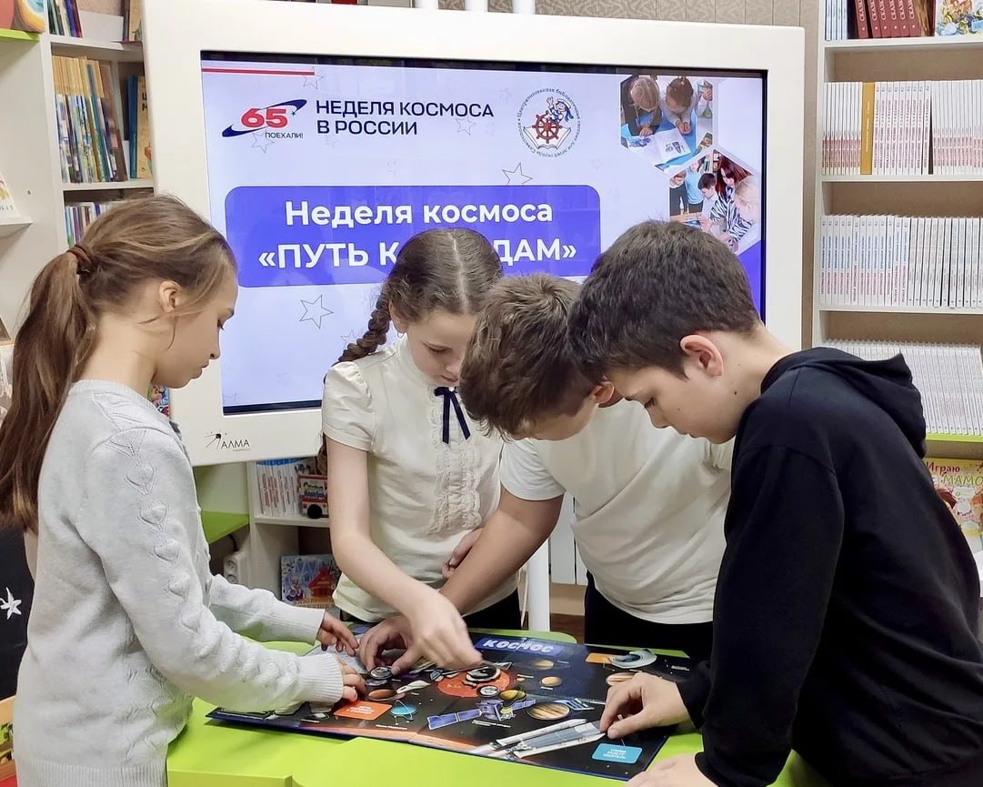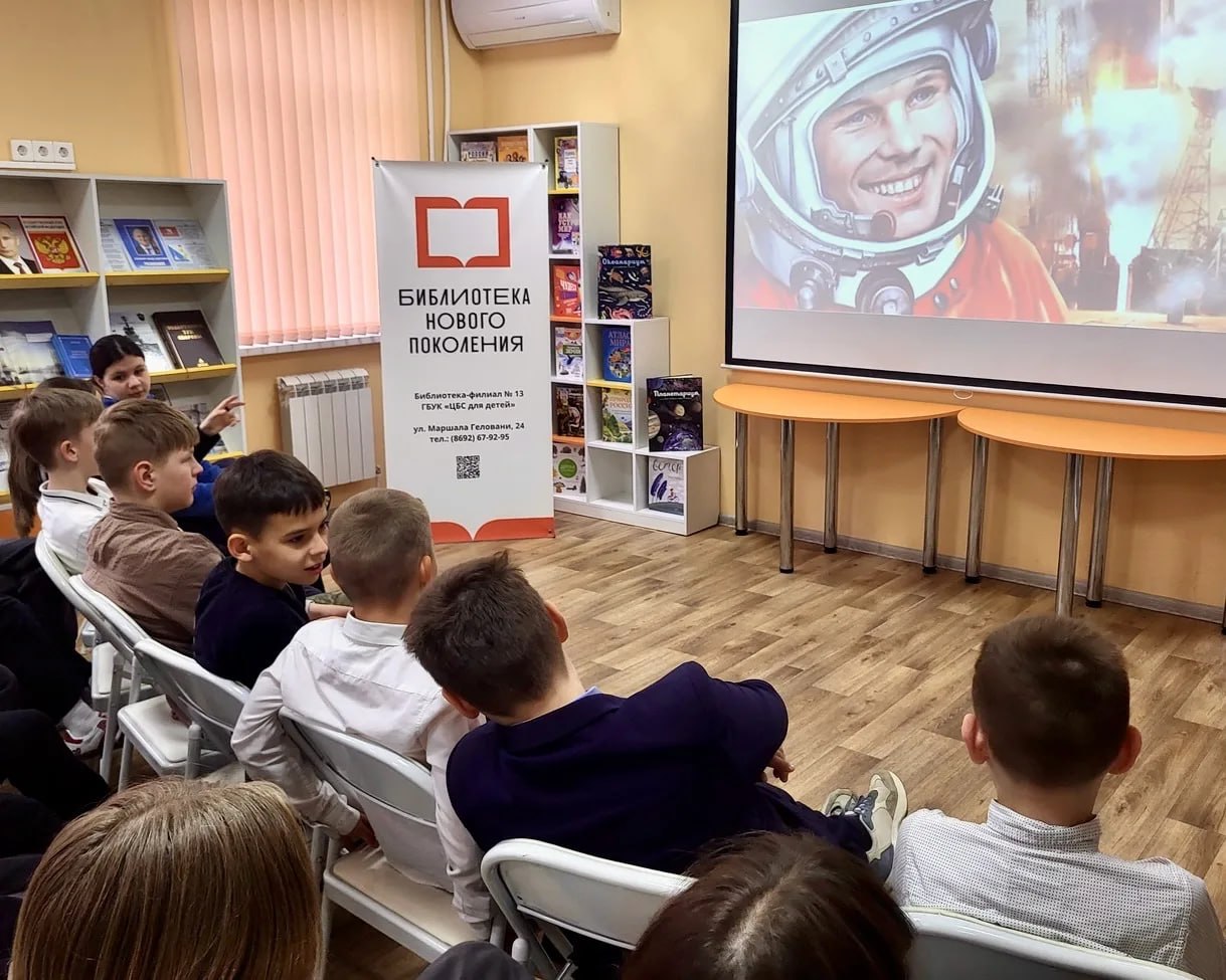 В модельной детской библиотеке-филиале № 13 состоялся познавательный час «Российская космонавтика: вчера, сегодня, завтра». Участникам рассказали о ключевых достижениях отечественной космонавтики. Завершилось мероприятие интерактивной игрой «Космический бой». В детской библиотеке-филиале № 5 прошло познавательное космическое путешествие. Дети познакомились с устройством Вселенной и подготовкой космонавтов. Для младших читателей показали кукольный спектакль «Крошка-космонавт».