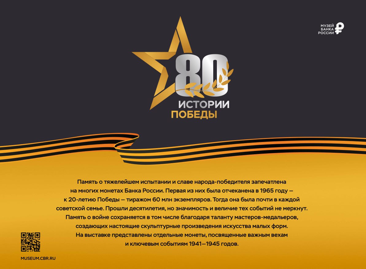 В год, когда мы отмечаем 80-летие Великой Победы, выставка «Истории Победы» предоставляет уникальную возможность не только познакомиться с удивительным разнообразием памятных монет, но и вновь прикоснуться к великим историческим событиям, которые навсегда вписаны в нашу память.