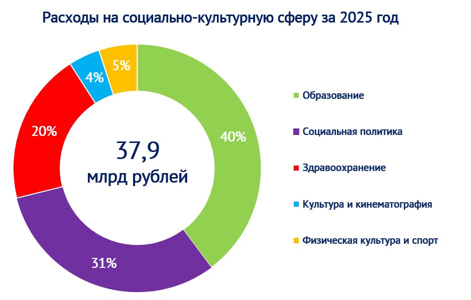 Объем расходов бюджета города на финансирование отраслей социально-культурной сферы на 01.01.2026 составил 37,9 млрд. рублей: