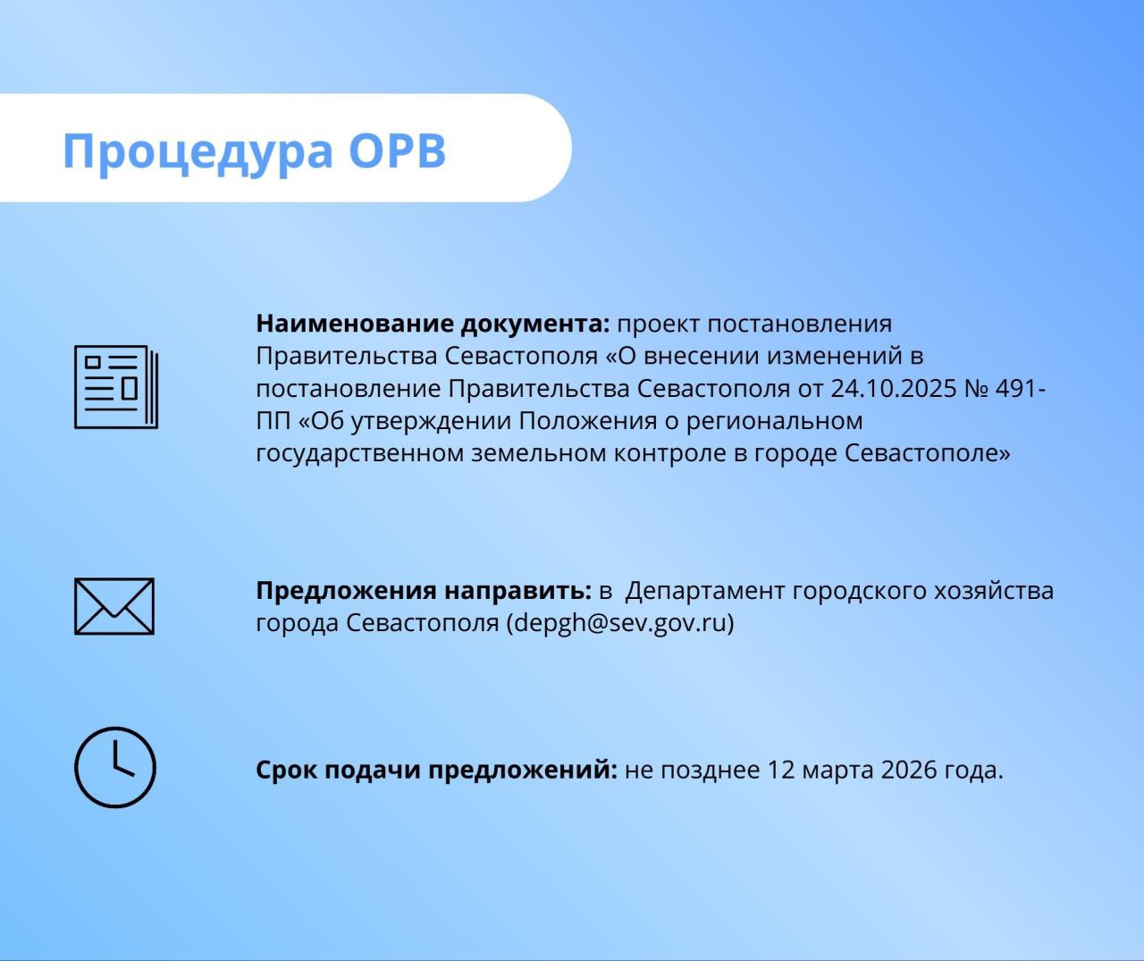 Продолжаем нашу еженедельную рубрику, посвященную оценке регулирующего воздействия (ОРВ) в Севастополе.