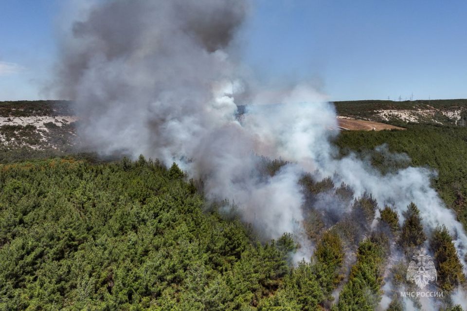 Больше кадров тушения пожара близ посёлка Сахарная головка в Севастополе