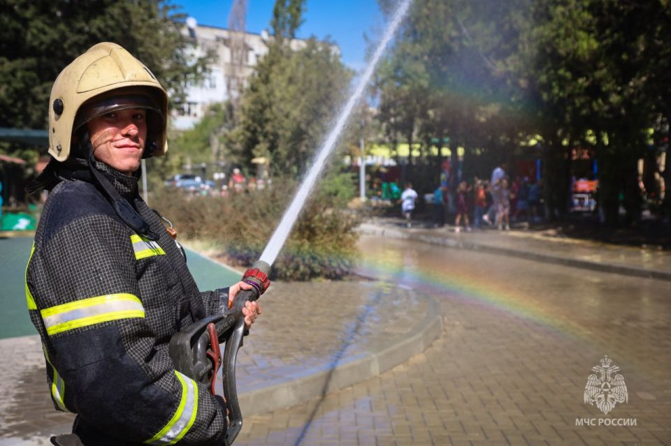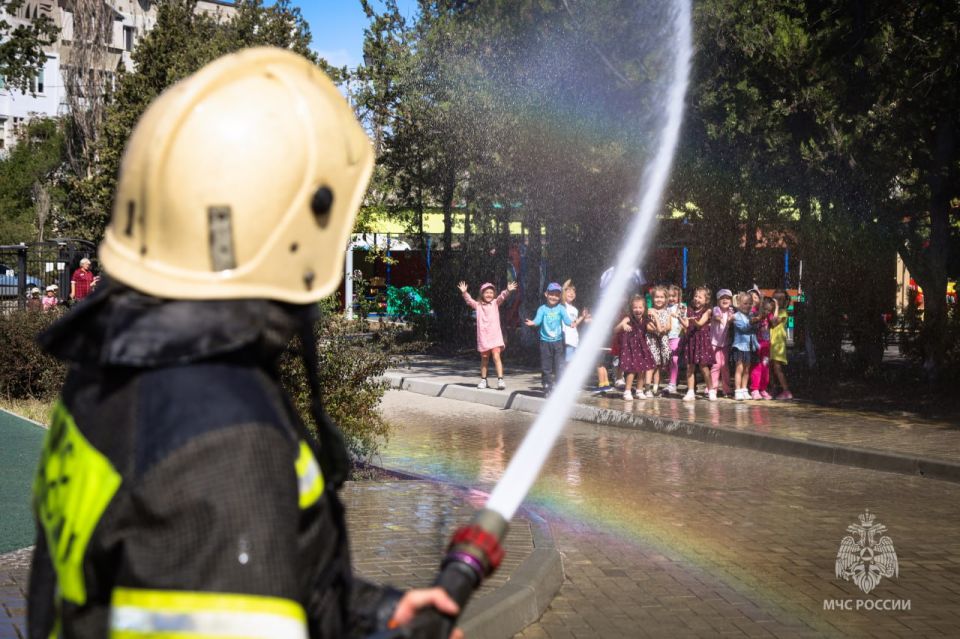 А ещё девчонки и мальчишки смогли почувствовать себя настоящими огнеборцами, подав воду из пожарного ствола вместе с сотрудниками ведомства. Урок превратился в весёлую игру.