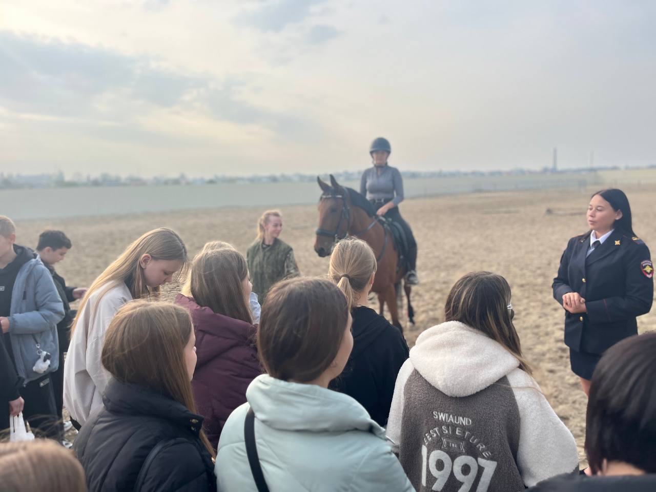 Начало экскурсии ознаменовалось знакомством со служебными собаками. Полицейские рассказали ребятам о наиболее популярных породах, отбираемых на службу в органы внутренних дел, а также про тонкости ухода за питомцами. Сразу после теоретического этапа экскурсионная группа перешла к практике. Один из четвероногих бойцов наглядно продемонстрировал блестящие навыки поиска запрещенных веществ и виртуозное прохождение полосы препятствий.Далее гости плавно переместились в конюшню, где их встретили полицейские лошади. Кавалерист разъяснил принцип выстраивания доверия между наездником и конем, который в дальнейшем обеспечивает слаженную командную работу. Кроме того, ребята узнали, что перед выходом на службу лошадей учат не бояться шума, толпы и выстрелов. Благодаря этому они будут способны сохранять спокойствие в самых стрессовых условиях.
