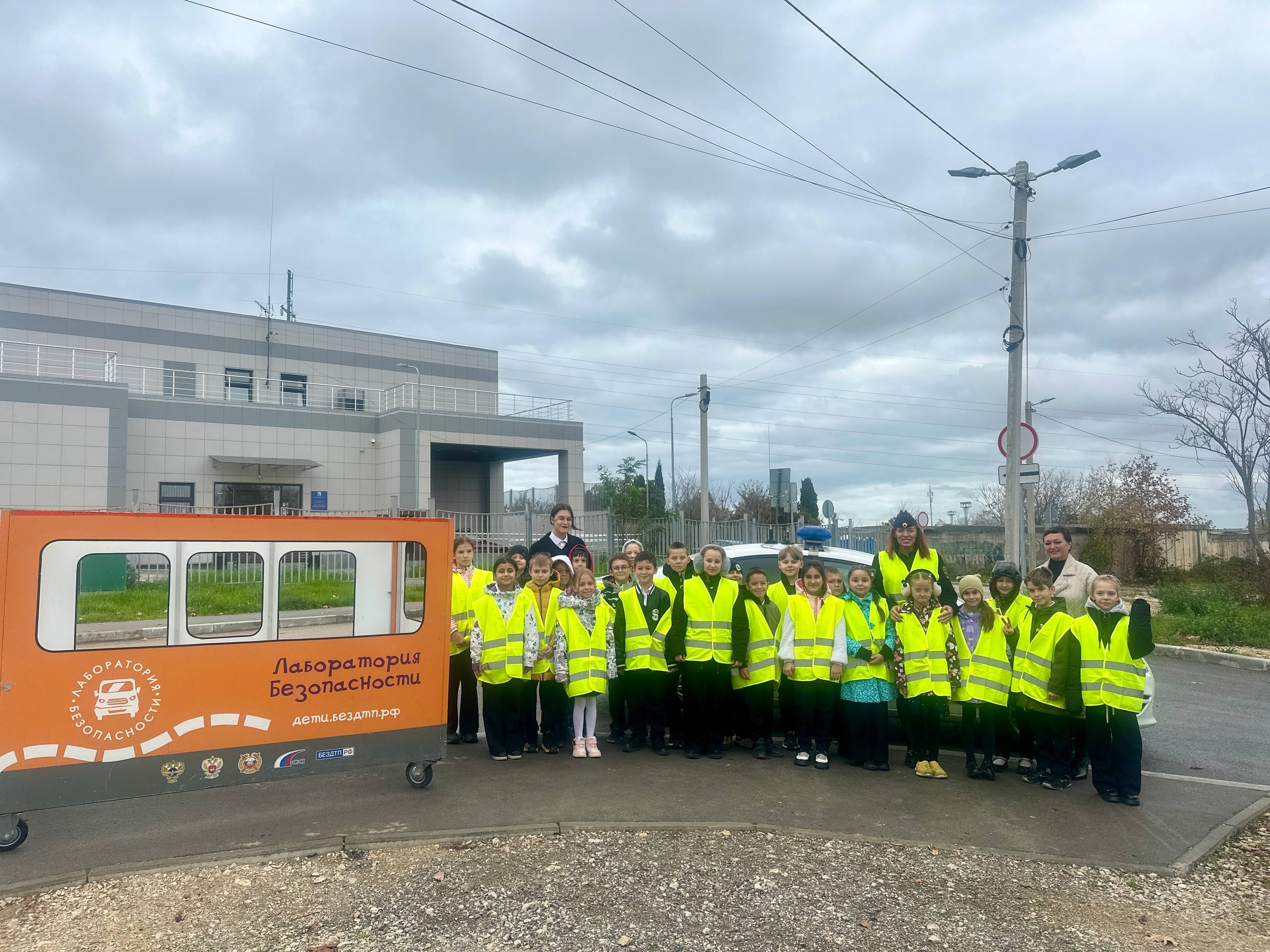 Сотрудники Госавтоинспекции совместно с мобильным комплексом «Лаборатория безопасности» провели профилактическую акцию «шагающий автобус»