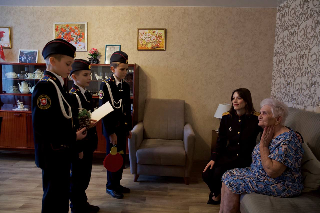 Нина Владимировна Потехина с удовольствием встречает кадет и сотрудников СК России у себя в гостях за чашкой чая. Она всю войну прошла медсестрой. Участвовала в форсировании Днепра, освобождении Украины, Кавказа, Болгарии, Румынии, Югославии. Победу встретила в Австрии. Вместе с Ниной Владимировной ребята пели фронтовые песни, офицеры и кадеты делились успехами в учебе и на службе, а также планами на предстоящие праздники.