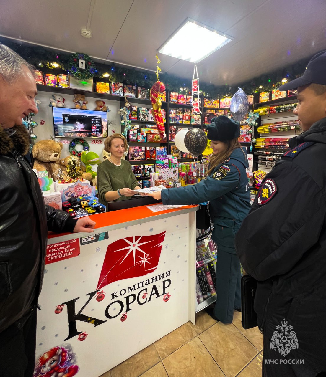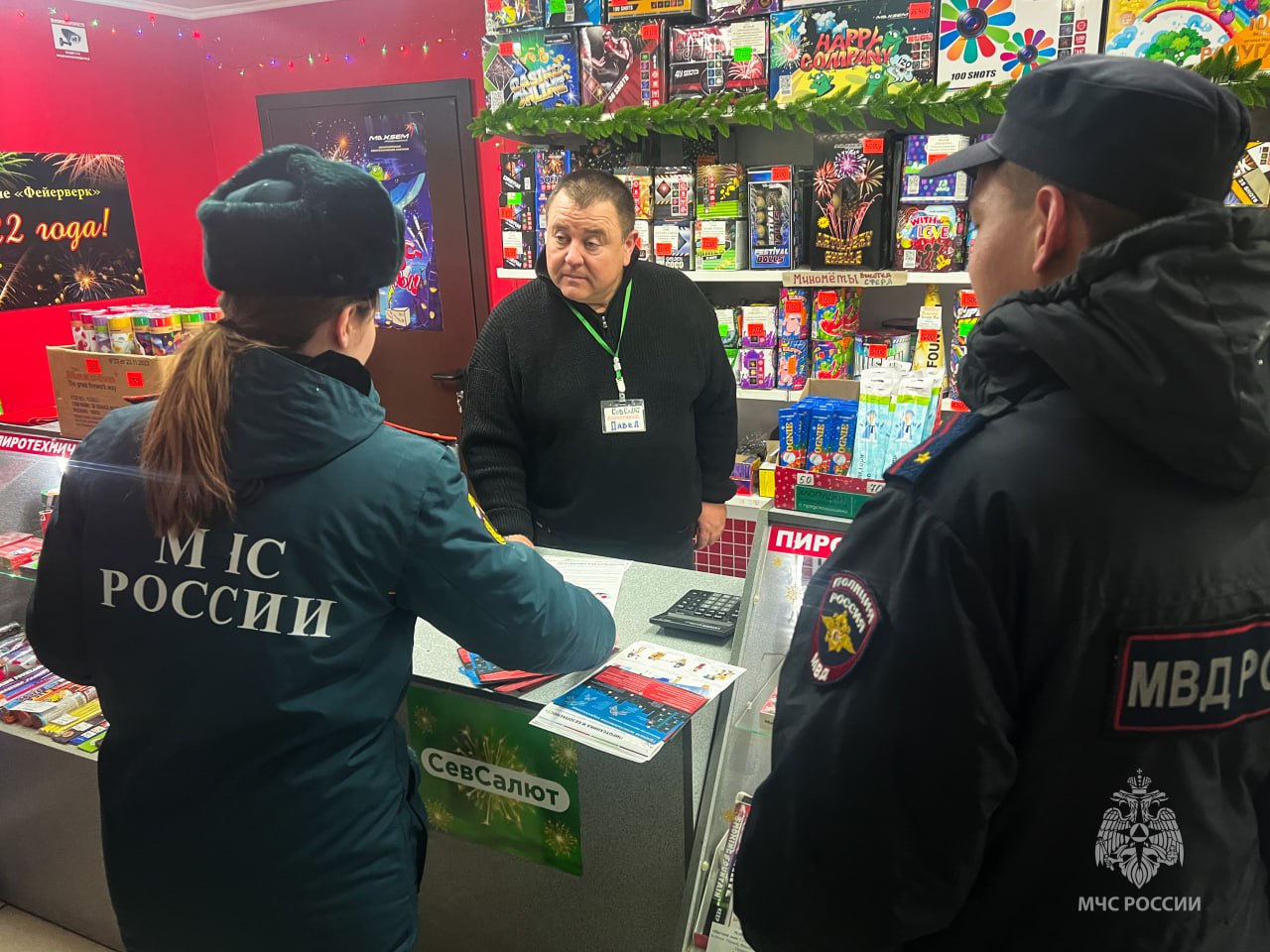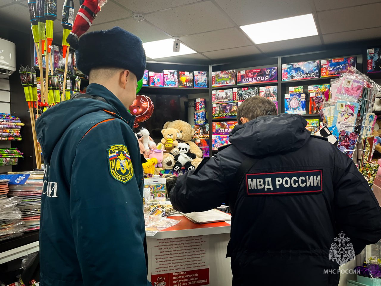 В канун торжеств сотрудники МЧС России и полиции обошли места реализации пиротехнической продукции и оценили, имеет ли товар сертификаты и понятные инструкции, не отпускается ли пиротехника детям. Также продавцам напомнили о необходимости проводить с покупателями инструктаж по мерам безопасности.