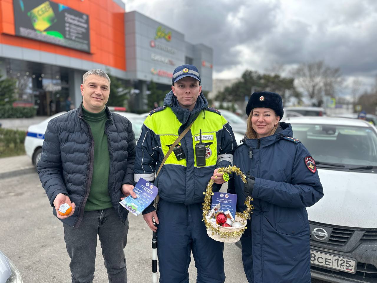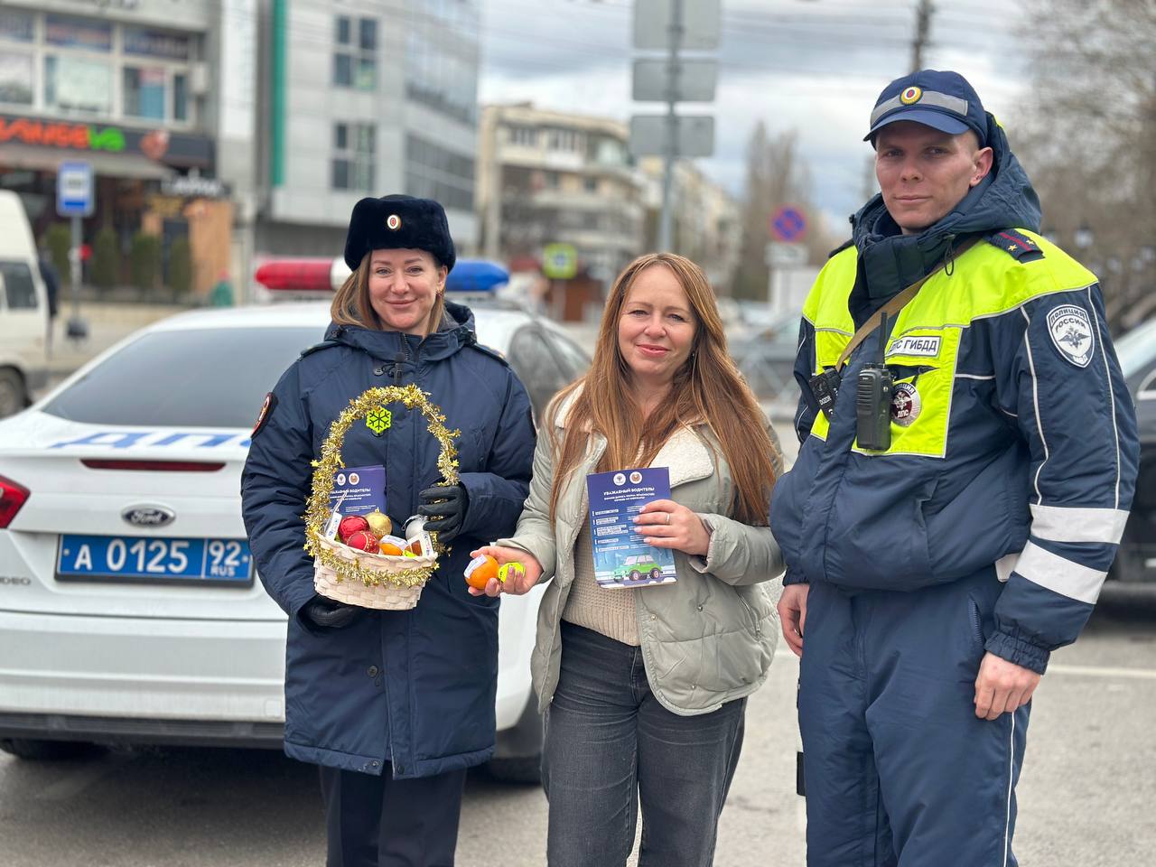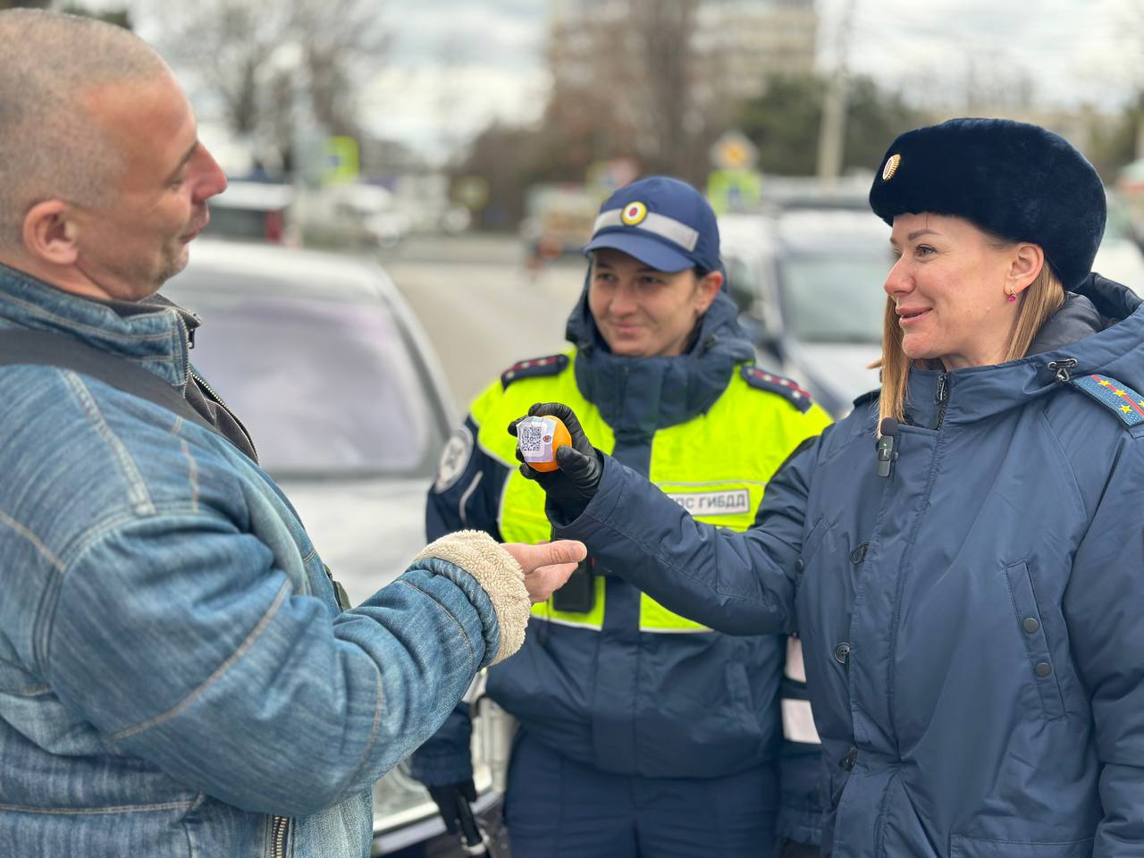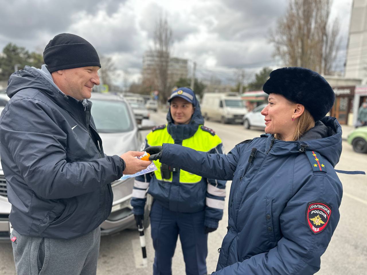 Сотрудники Госавтоинспекции Севастополя напомнили водителям о важности соблюдения ПДД и вручили «витамины безопасности»