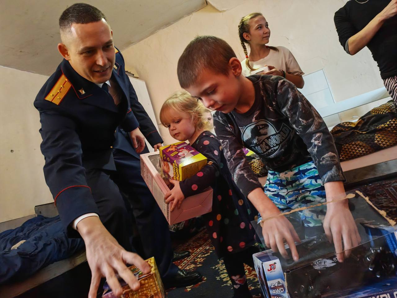 Куклы и машинки, мягкие игрушки, разнообразные творческие наборы и, конечно же, сладкие подарки. В рамках акции «Елка желаний» офицеры исполнили мечты девчонок и мальчишек, приехав поздравить их лично, получив в знак благодарности море эмоций от детских улыбок.
