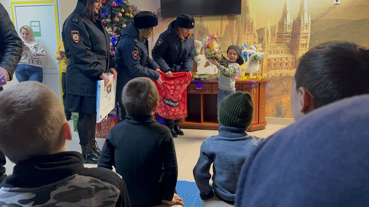 Севастопольские полицейские вместе с представителями мотосообщества поздравили с крещенскими праздниками воспитанников городского социального приюта