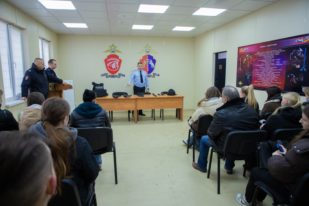 Уже у ворот участников акции ждала эффектная встреча: сотрудники кавалерийского подразделения встретили гостей верхом, продемонстрировав выправку и гармоничный союз всадника и его четвероногого партнёра.Знакомство со службой началось в актовом зале. Сотрудники ОБ ППСП имени Василия Ивановича Бузина подробно рассказали студентам о своей ежедневной работе: обеспечении правопорядка на улицах города и взаимодействии с другими подразделениями полиции. Ребята узнали, как выстраивается работа во время массовых мероприятий, как координируются действия пеших патрулей, кинологов и кавалеристов для решения сложных оперативных задач.