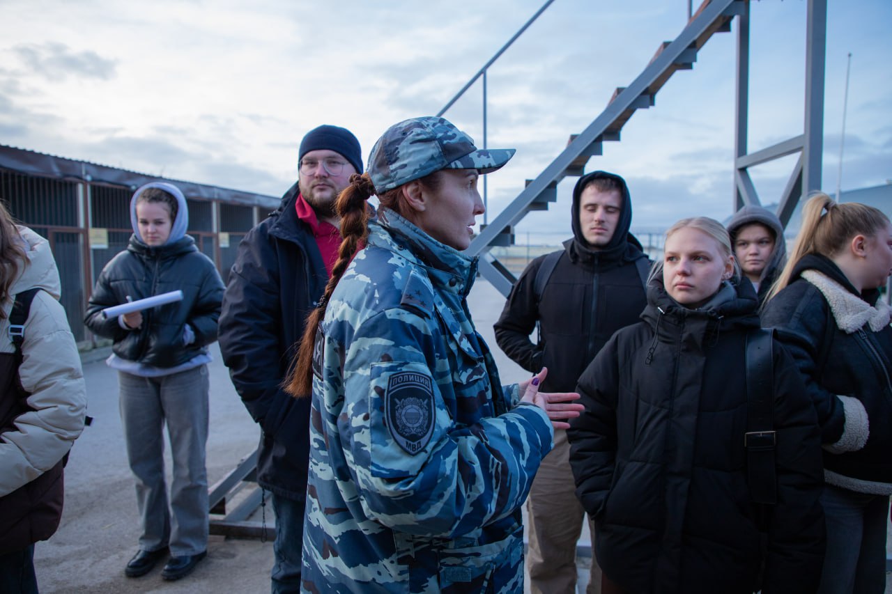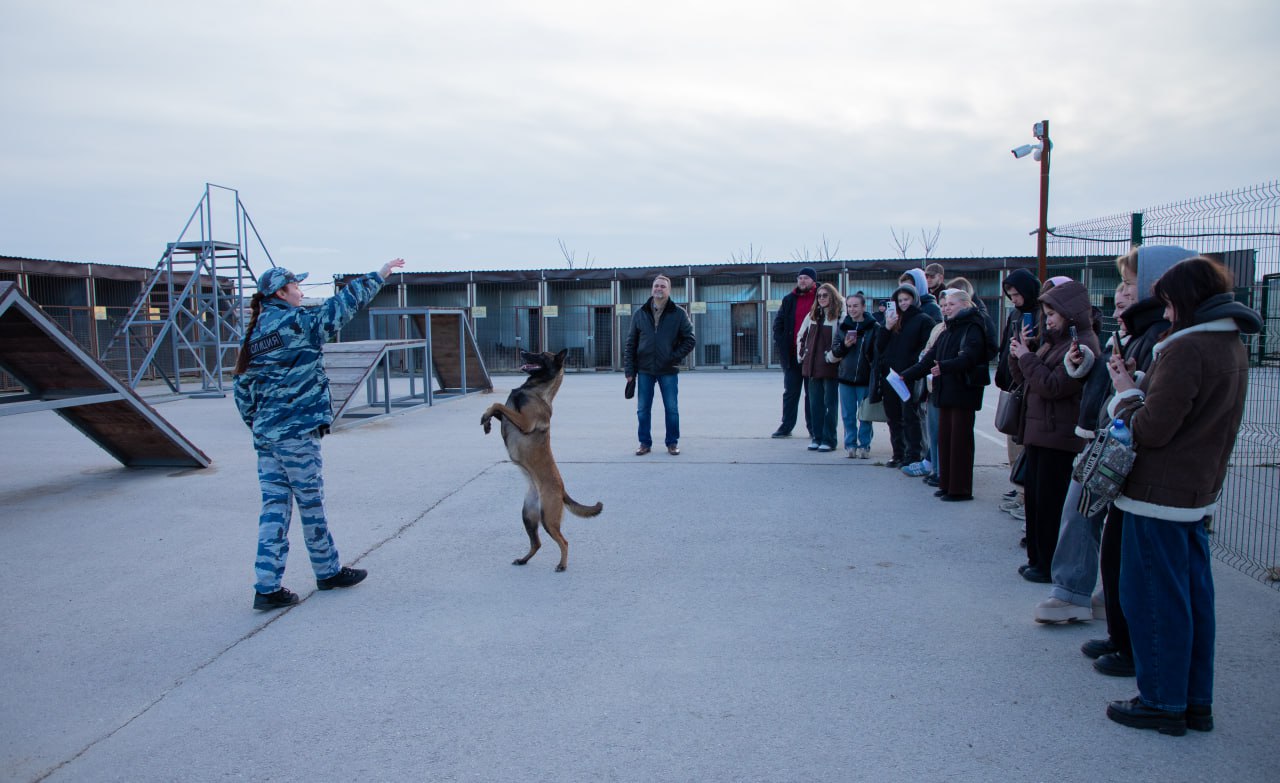 Следующей точкой маршрута стала тренировочная площадка кинологической службы. Под чутким руководством опытных наставников служебные собаки продемонстрировали безупречное послушание и элементы специальной дрессировки. Студенты увидели не просто тренировку, а настоящее партнёрство, где каждое движение, жест и команда основаны на глубокой связи и взаимном уважении между кинологом и его четвероногим напарником.