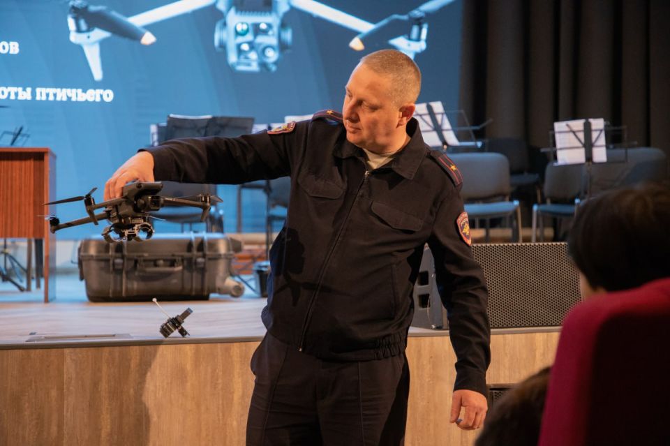 Сотрудники Центра провели для гостей интерактивное занятие, подробно рассказав о нюансах своей службы. В фокусе внимания оказались не погони и задержания, а современные технологии, превращающие данные в доказательства, а сигналы — в раскрытые преступления.Особый интерес у ребят вызвали беспилотные летательные аппараты — дроны, которые уже стали незаменимыми помощниками полиции. Школьникам объяснили, как с их помощью выявляют нарушения в сфере миграции, контролируют общественный порядок во время массовых мероприятий и, что самое важное, оперативно находят пропавших людей в труднодоступной местности.