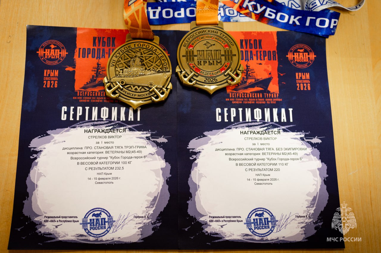 Силовыми видами спорта сотрудник занимается уже много лет. На его счету более полусотни побед и наград. МЧС России по Севастополю поздравляет Виктора Александровича и желает ему не останавливаться на пути к большим высотам!