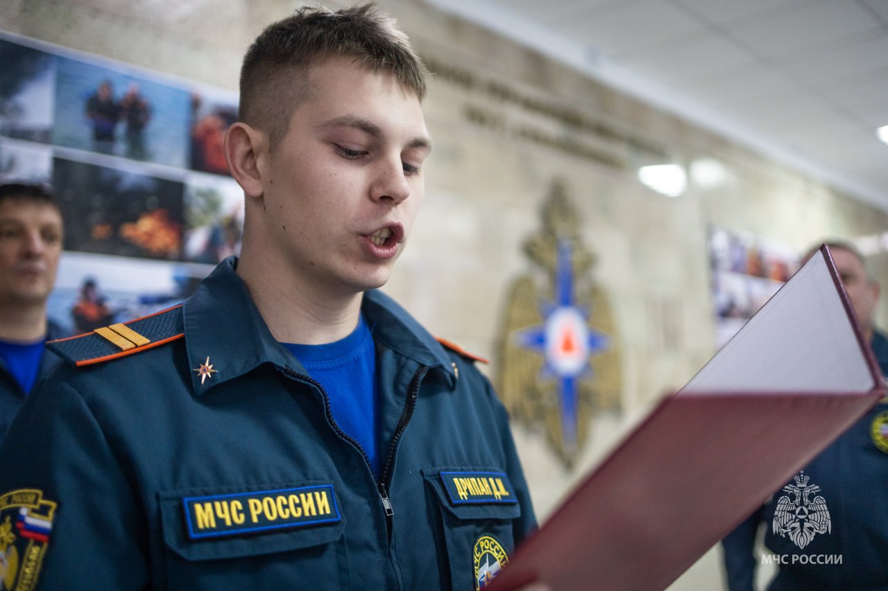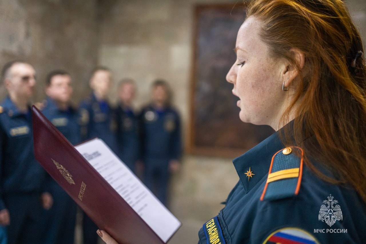 Церемония прошла в культурно-информационном центре Главного управления. Перед лицом руководства и коллег десять молодых сотрудников обещали верой и правдой служить Родине и стать достойными продолжателями славных традиций спасательного ведомства.