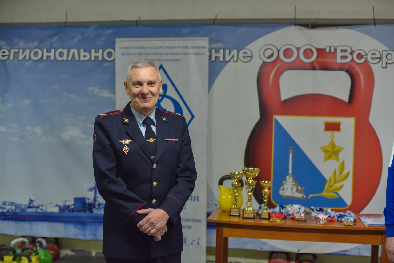 Начальник УМВД России по г.Севастополю генерал-майор полиции Сергей Сигунов вручил спортивные кубки командам-победительницам соревнований по гиревому спорту среди полицейских