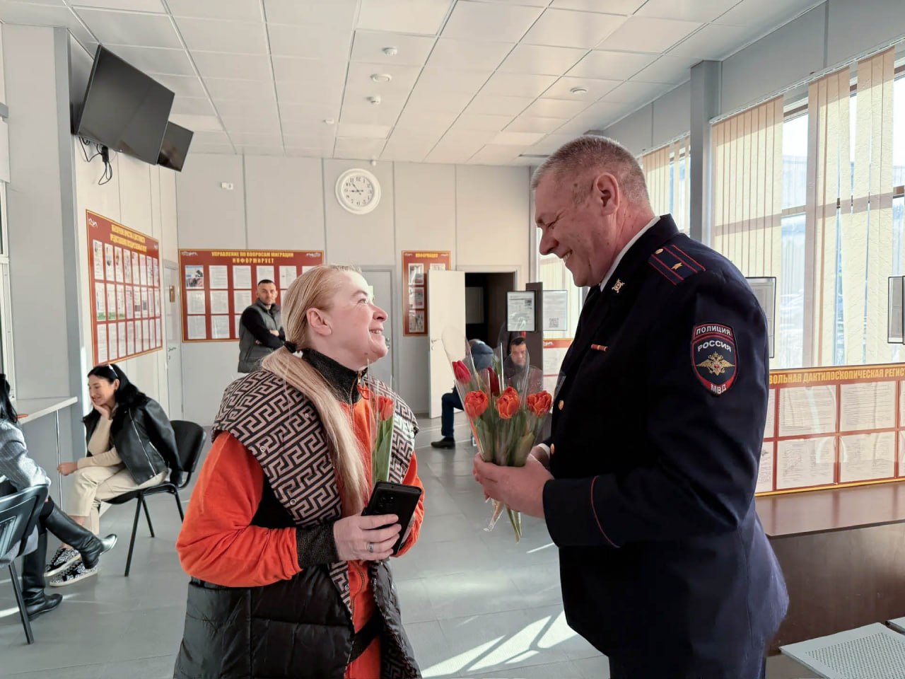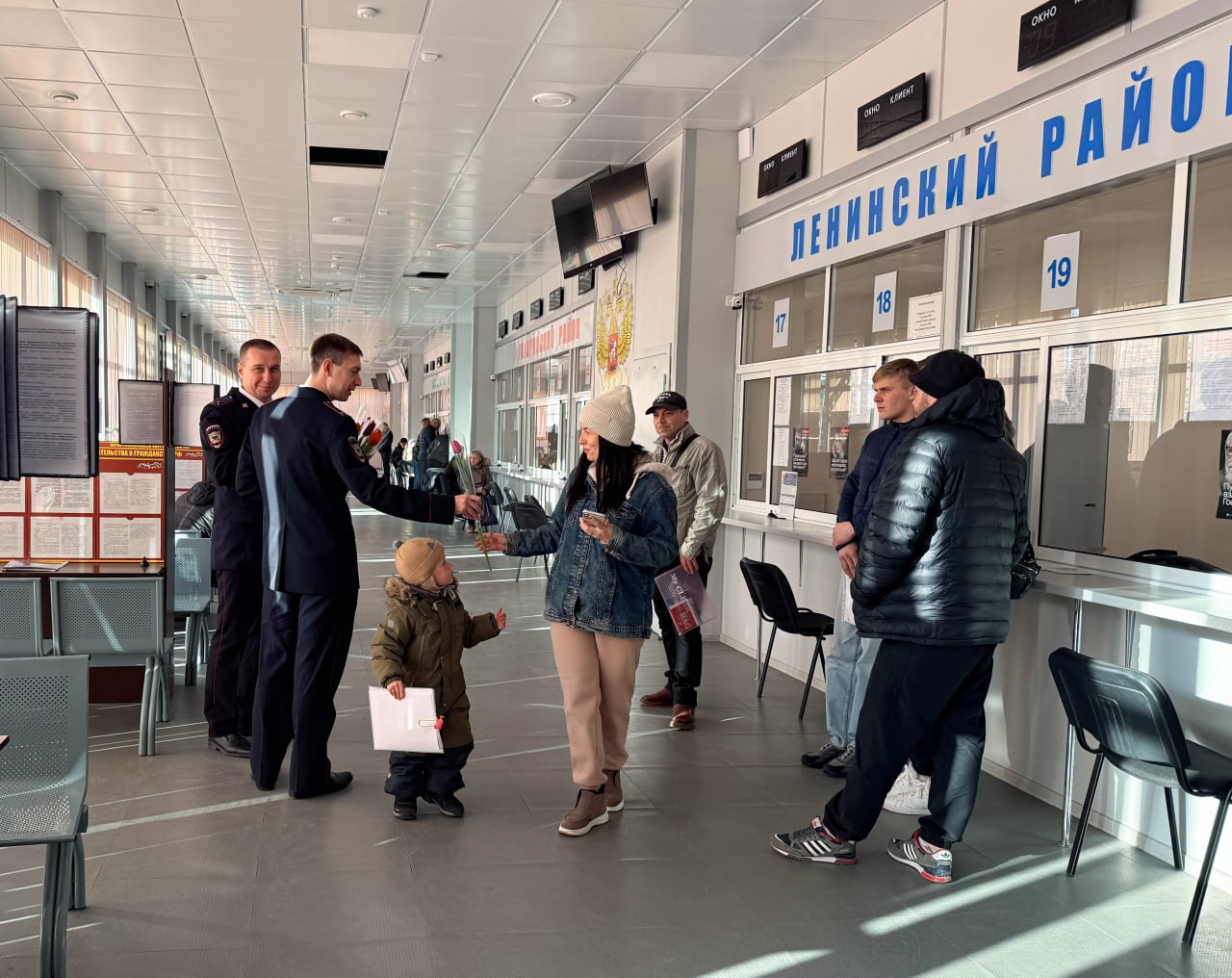 «8 марта в каждый дом»: в Севастополе сотрудники миграционных подразделений полиции поздравили посетительниц с наступающим праздником