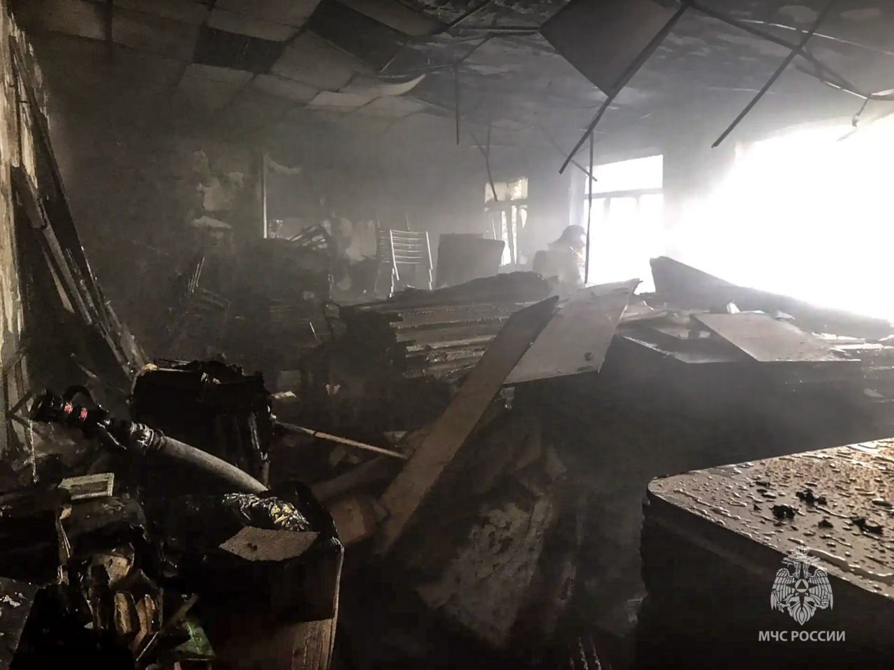 Пламя локализовали и устранили открытое горение за 10 минут, распространения не допущено. Ведётся проливка помещений. Погибших и пострадавших нет.
