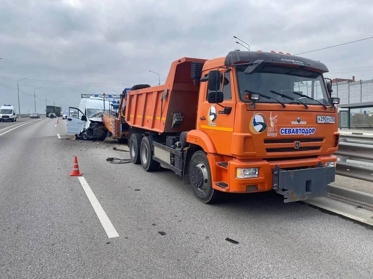 По предварительной информации Госавтоинспекции, сегодня в 09 часов 37 минут на 6 км + 75 м автодороги Севастополь-Инкерман 22-летний водитель автомобиля «Газель» неправильно выбрал безопасную дистанцию до впереди движущегося автомобиля «КамАЗ» с прицепом «Чистодор» под управлением 29-летнего водителя и совершил с ним столкновение.