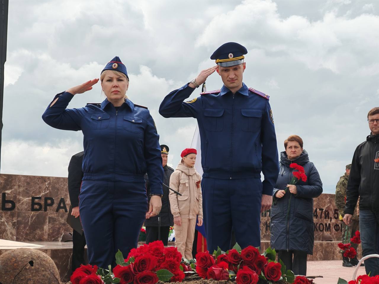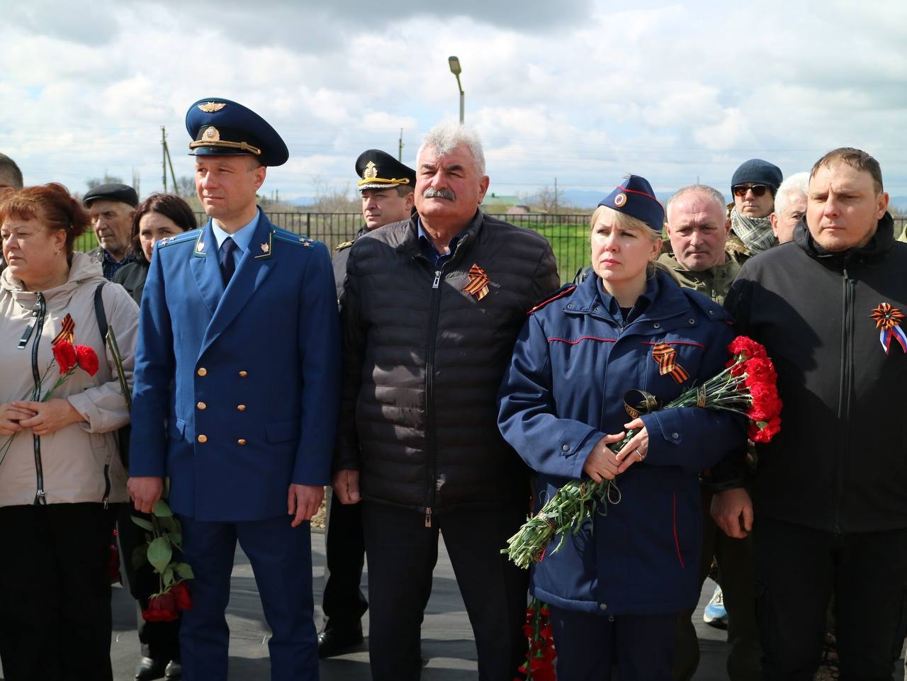 Участники церемонии почтили память погибших минутой молчания и возложили цветы к могиле.
