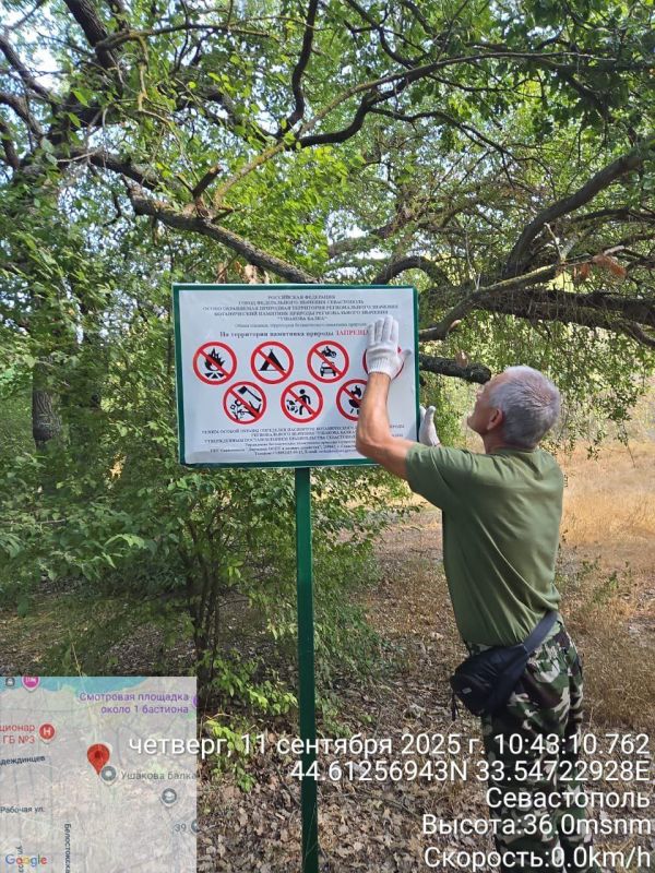 В Севастополе ГБУ "Дирекция ООПТ и лесного хозяйства" при Департаменте природных ресурсов и экологии проводит работы по обслуживанию информационных знаков на особо охраняемых природных территориях (ООПТ).
