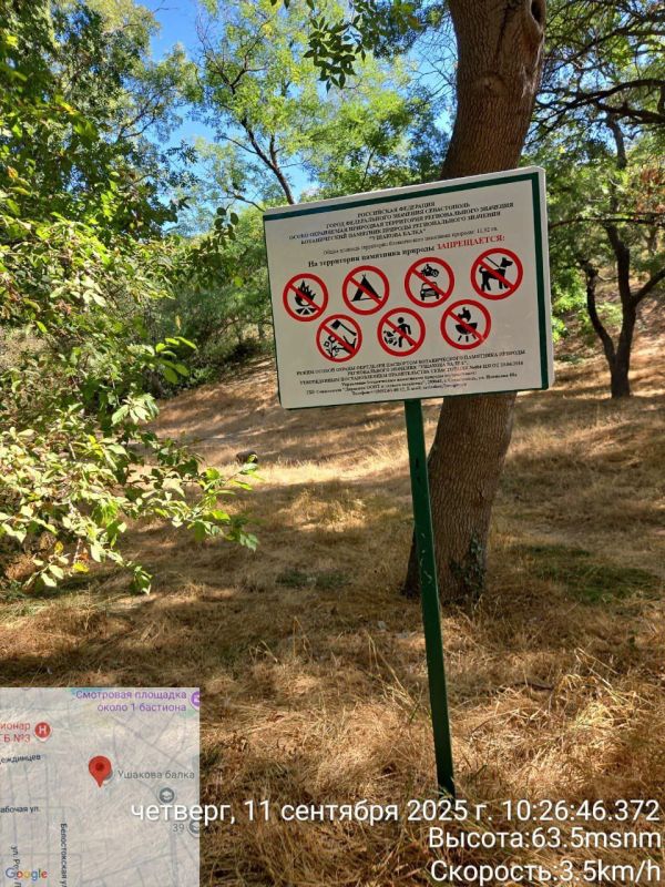 Уже завершены работы по восстановлению 7 информационных знаков на территории ботанического памятника природы регионального значения "Ушакова балка" и установке 1 знака со стороны ул. Макарова.