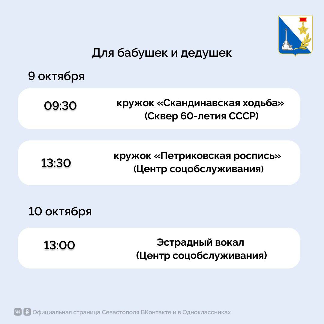 Специалисты Севастопольского центра социального обслуживания подготовили бесплатные мероприятия на следующую неделю.