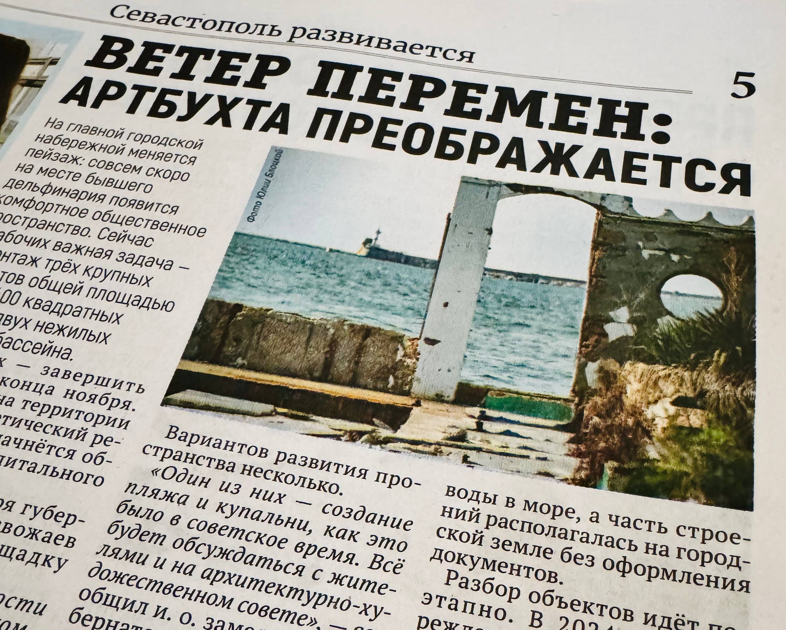 В новом выпуске газеты «Слава Севастополя» мы рассказали о строительных работах на главной городской набережной — на месте бывшего дельфинария.