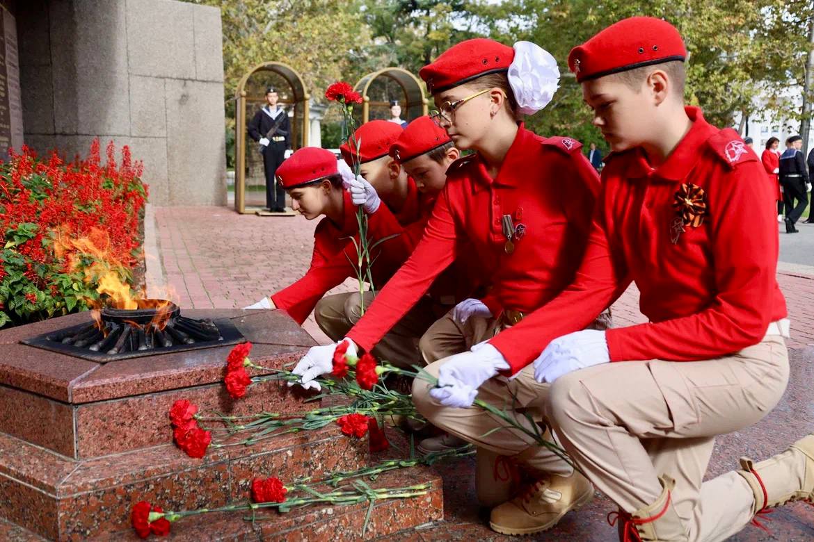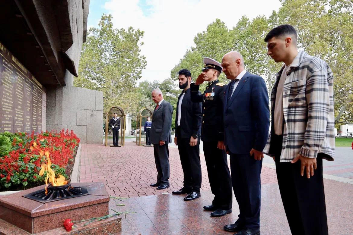 У Мемориала в честь героической обороны Севастополя в 1941-1942 г.г. Вячеслав Головин познакомился с церемониалом смены почетного караула. Вместе с юнармейцами он возложил цветы к Вечному огню в память о героях прошлого и настоящего.