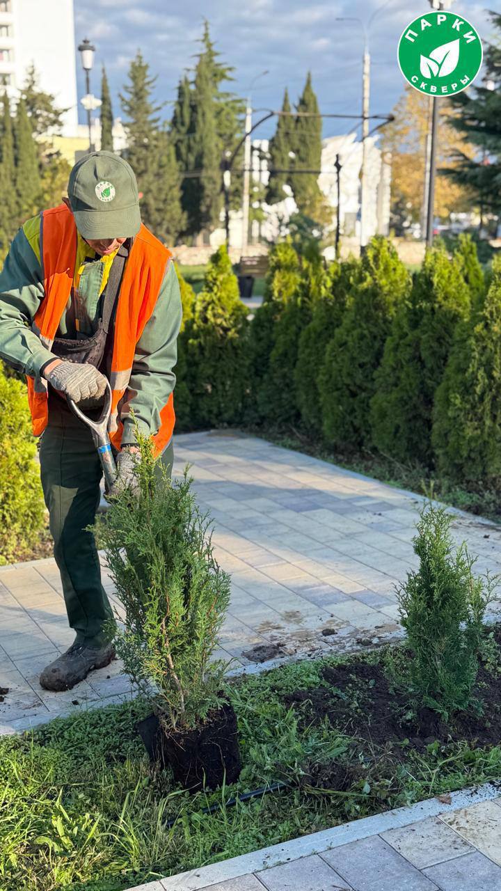 Площадь Восставших в Севастополе пополнилась 70 молодыми туями. Новые деревья призваны улучшить облик площади, добавить зелени и создать более комфортное пространство для отдыха горожан.