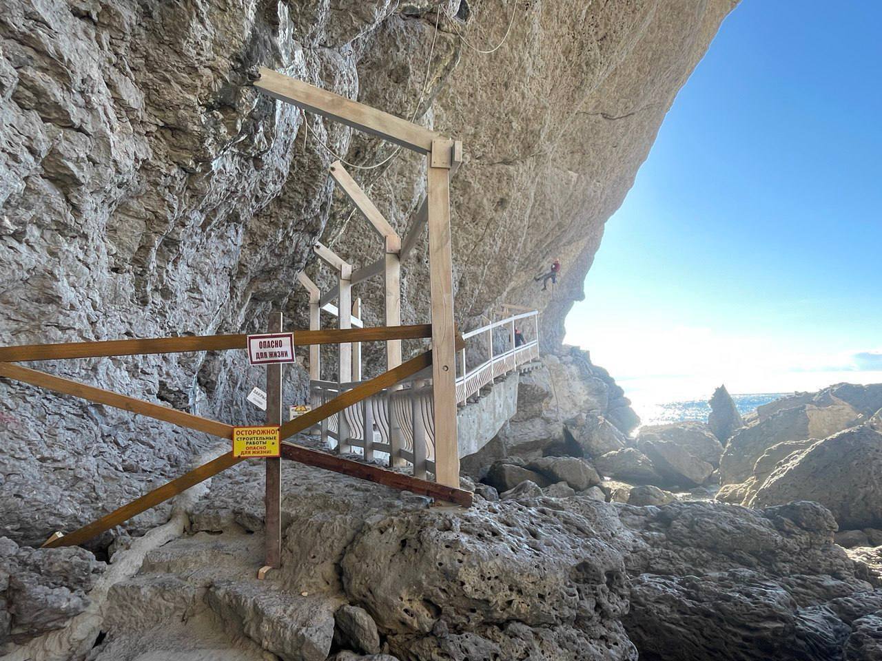 На «Тропе Голицына» в Новом Свете ликвидируют последствия обвала скалы из-за ливней.