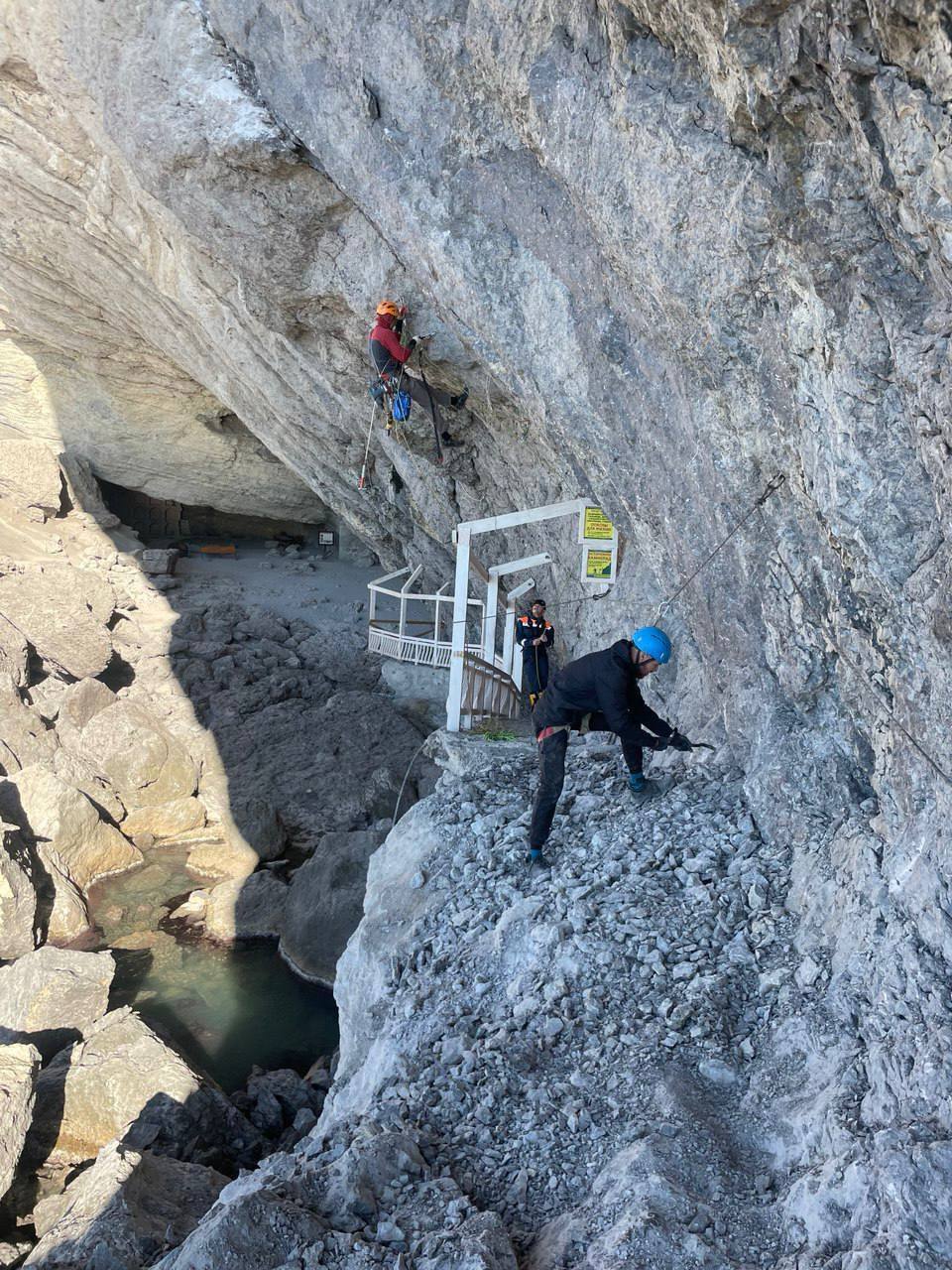Специалисты разбирают завалы и убирают свисающие камни. После будет проведена оценка объёмов восстановительных работ.