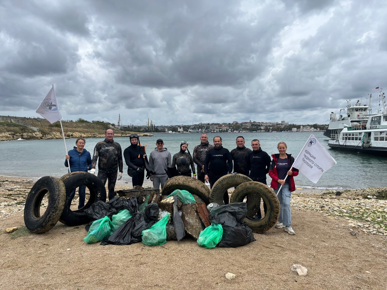 Несмотря на ненастную погоду, участники Ассоциации подводной деятельности Крыма и Севастополя провели экологическую акцию на Северной стороне города. Силами десяти дайверов со дна у причала катеров было поднято около тонны различного мусора.