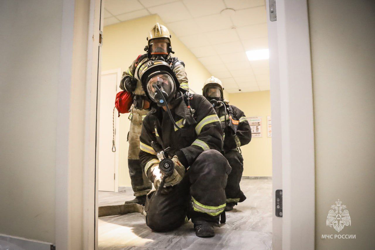 Тренировка пожарных прошла в учреждении впервые. Легенда для сотрудников — возгорание из-за неисправности электрооборудования. В ходе учений они осмотрели помещения, изучили особенности здания и успешно ликвидировали пожар.