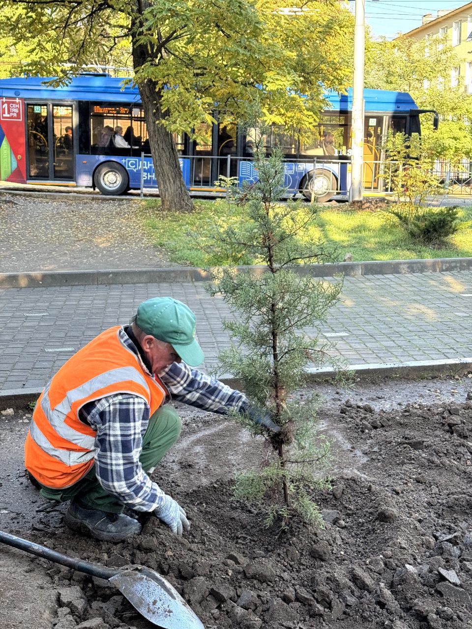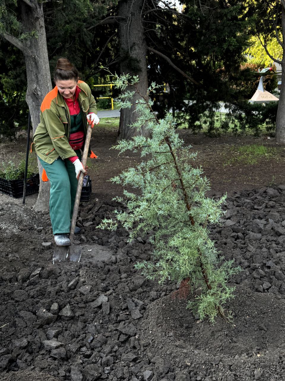 Сотрудники ГБУ "Парки и скверы" высадили кипарис "Аризонский" и Пираканту.