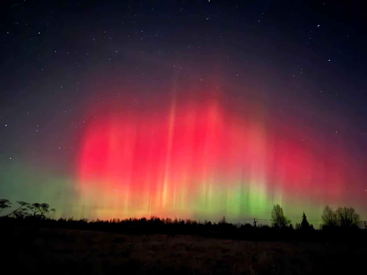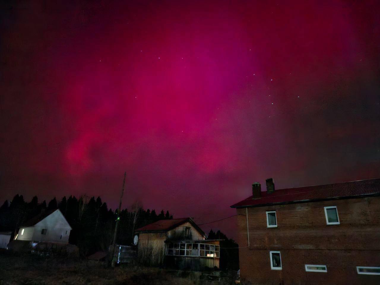 Мощнейшая магнитная буря стала причиной необычайно яркого и широкомасштабного ярко-красного полярного сияния