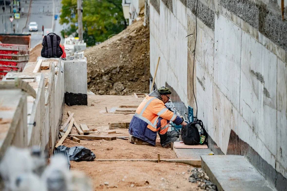 Ежедневно на объекте трудится 60 работников и 13 единиц техники. В планах запустить рабочее движение по улице Адмирала Октябрьского к лету 2026 года. Перенос сроков завершения капитального ремонта связано с работой крупногабаритной техники в стесненных условиях, «мокрых» процессов монолитный работ, а также специфических условий выполнения строительно-монтажных работ вблизи расположенных жилых домов и городской больницы, что не позволяет вести работы в ночное время суток.