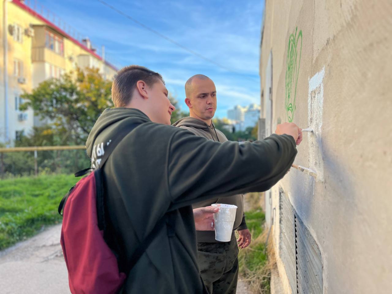 Полицейские Севастополя вместе с волонтёрами закрасили более 200 рекламных надписей наркотиков
