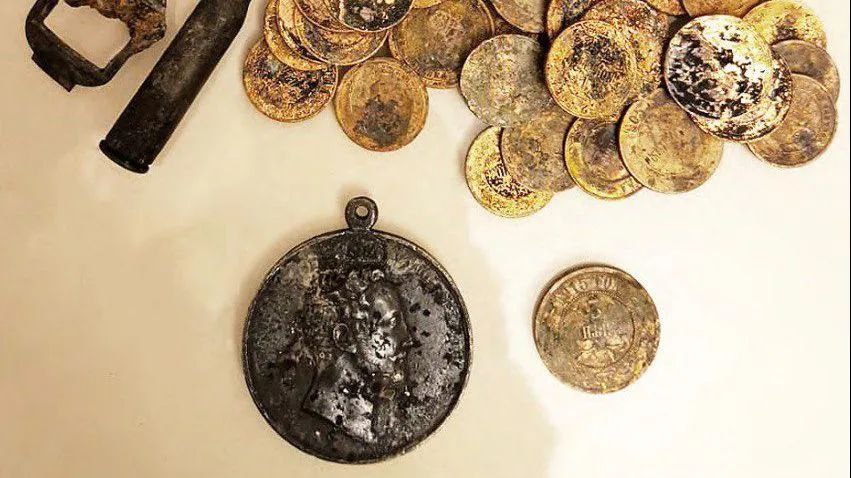 Главной находкой стала серебряная нашейная медаль «За усердие» времён Николая I.