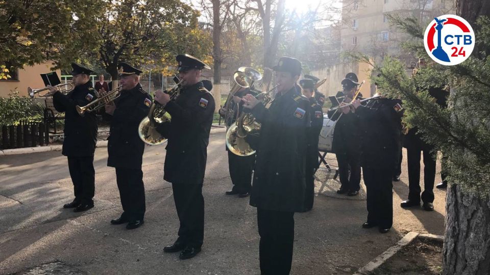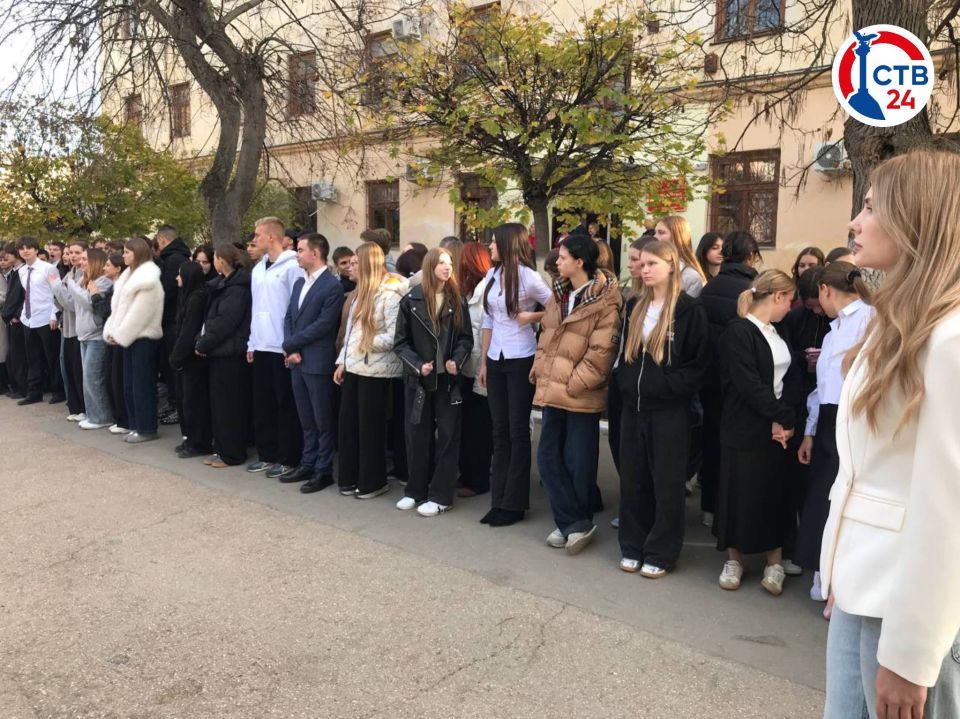 Студенты и преподаватели совместно с духовым оркестром Черноморского флота исполнили гимны России и Севастополя.