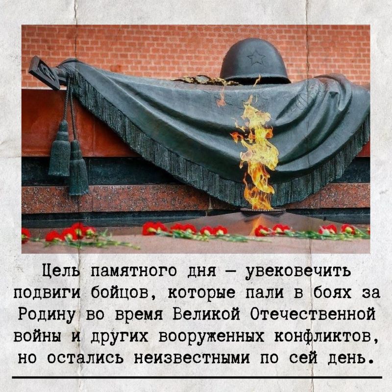 Скорбная дата посвящена памяти людей, которые отдали свою жизнь за победу в Великой Отечественной войне, и чьи имена так и не удалось установить. В этом году памятный день отмечают в 12 раз.