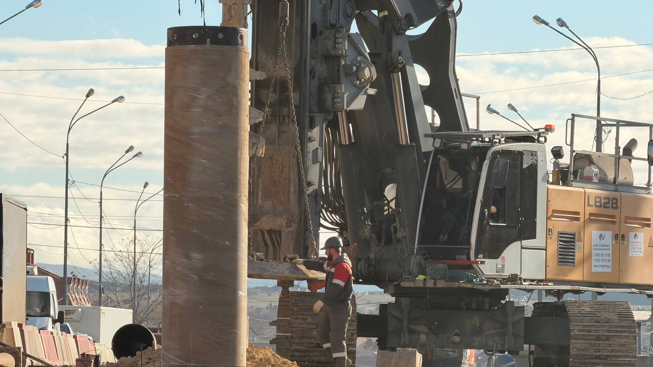 Подрядчик выполняет монтаж буронабивных свай подпорных стен. Параллельно продолжаем переустройство сетей водоснабжения, канализации, электричества и связи. Темпы строительства развязки наращиваем.