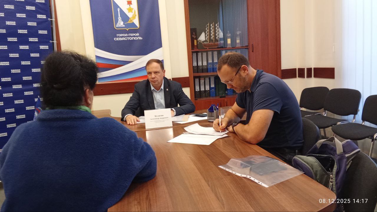 Сегодня, 08 декабря 2025 года в Декаду приемов граждан, приуроченную к 24-летнему Дню рождения партии на площадке Региональной общественной приемной Председателя партии "ЕДИНАЯ РОССИЯ"Д.А.Медведева в городе Севастополе провел личный прием граждан Депутат Законодательного Собрания III созыва Александр Андреевич Кулагин.